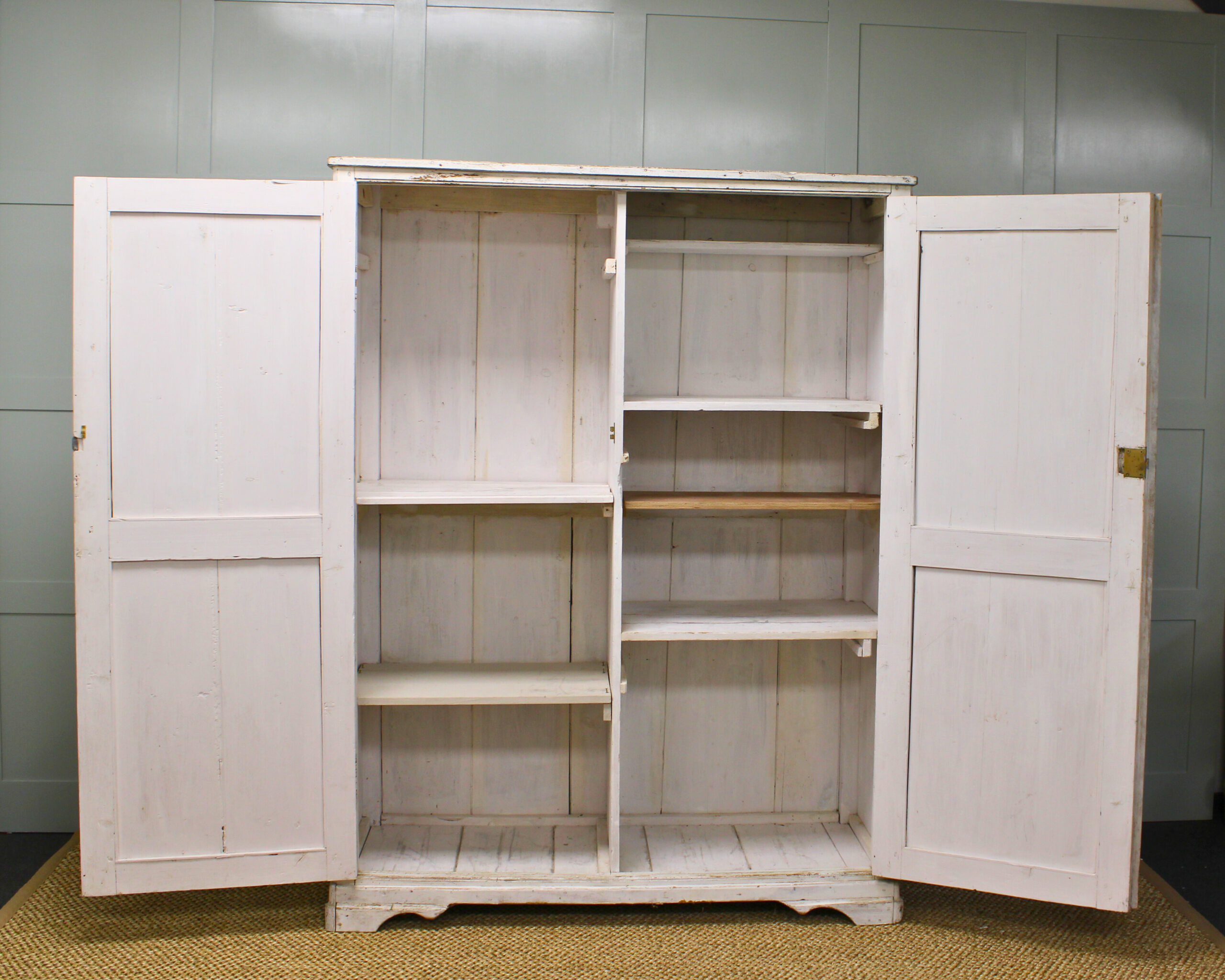 French provincial armoire, c.1820–1860, in classic Louis Philippe style with scalloped panels and distressed cream finish. A timeless piece offering warmth and character—ideal as a wardrobe, linen cupboard, or statement storage.