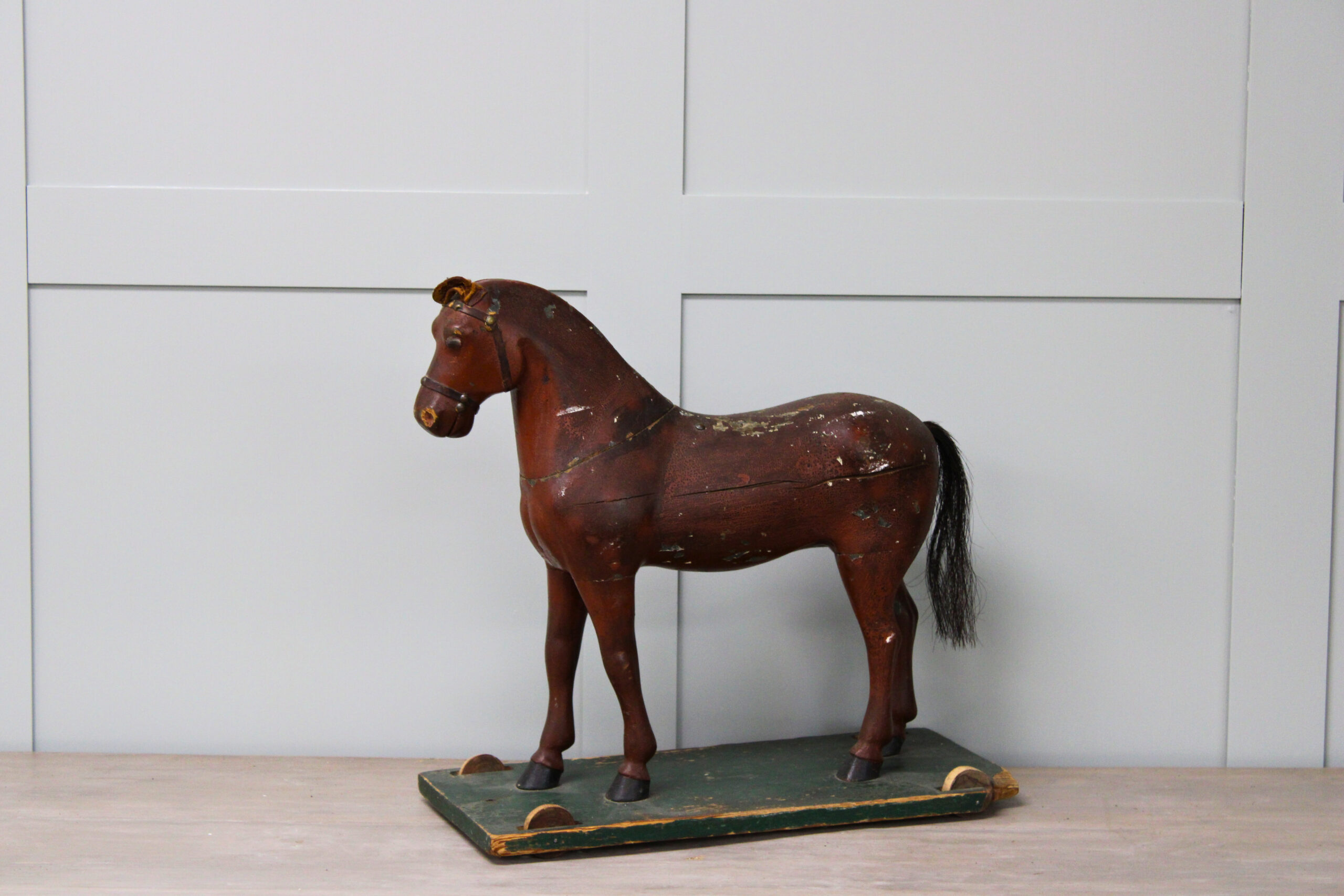 Antique Wooden Toy Horse On Platform – 19th Century