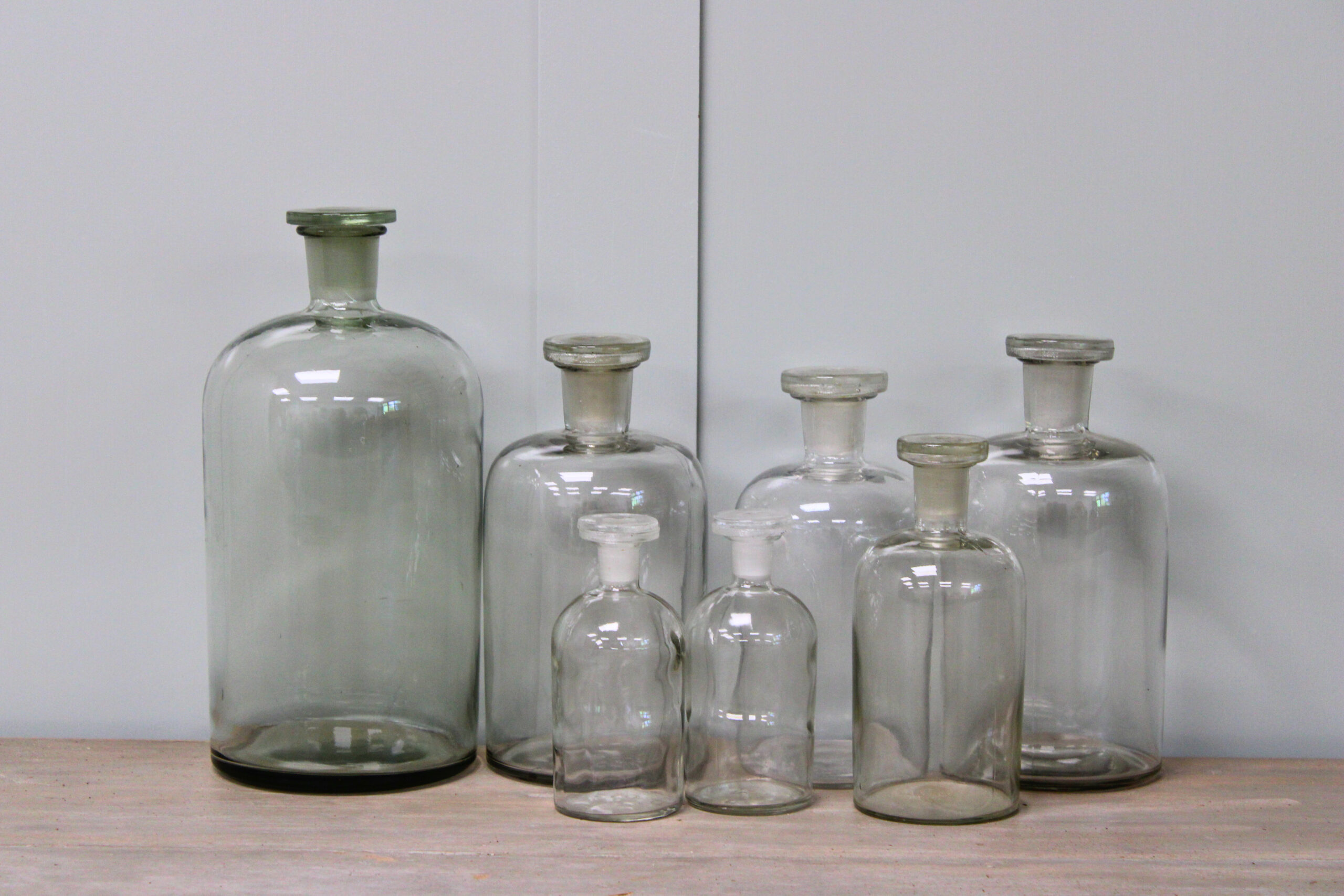 Vintage Glass Apothecary Bottles – Set of 7